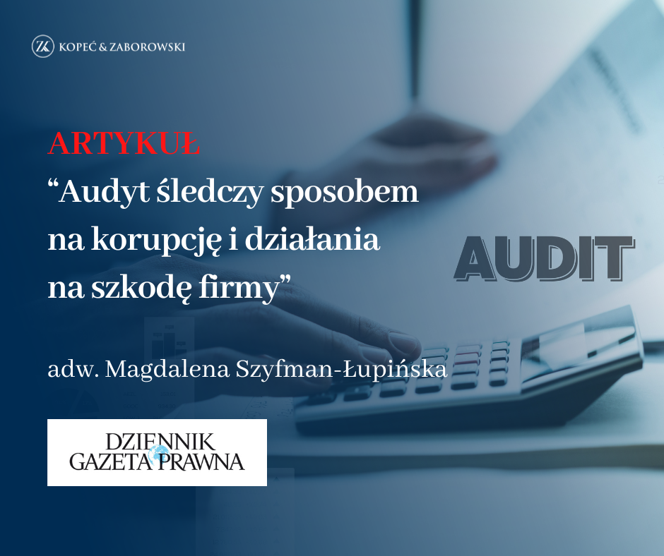 Dlaczego audyt śledczy jest tak skutecznym narzędziem do walki z korupcją? O tym adw. Magdalena Szyfman-Łupińska dla „Dziennik Gazeta Prawna”.